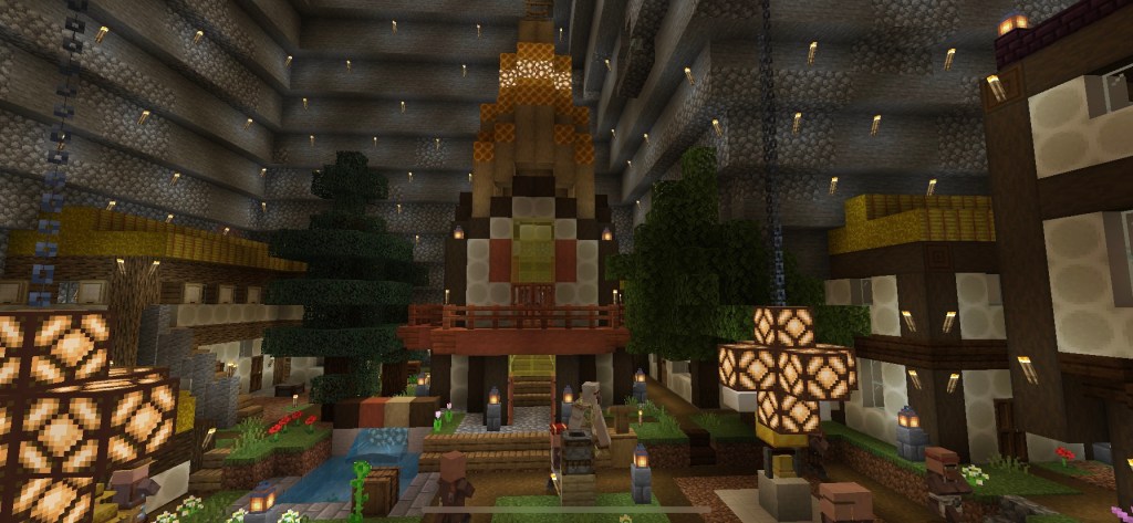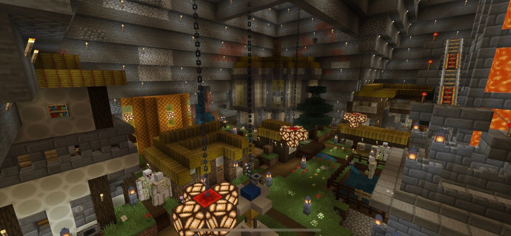 My idea was to build a large village in a safe location and where better than in a sealed underground vault. So here’s my first big survival build Cave Town.