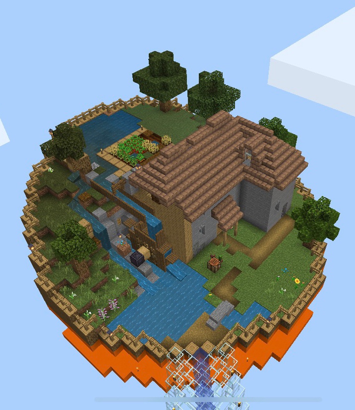 The smallest of all the island it’s just a hole at maximum hight that you can fall down into a pool in the deep dark. I did try to build one of those tall cobblestone buildings that I’ve seen videos of people making – by pouring lava down a few blocks – It didn’t work for me though and I ended up with an ugly mess to clean up