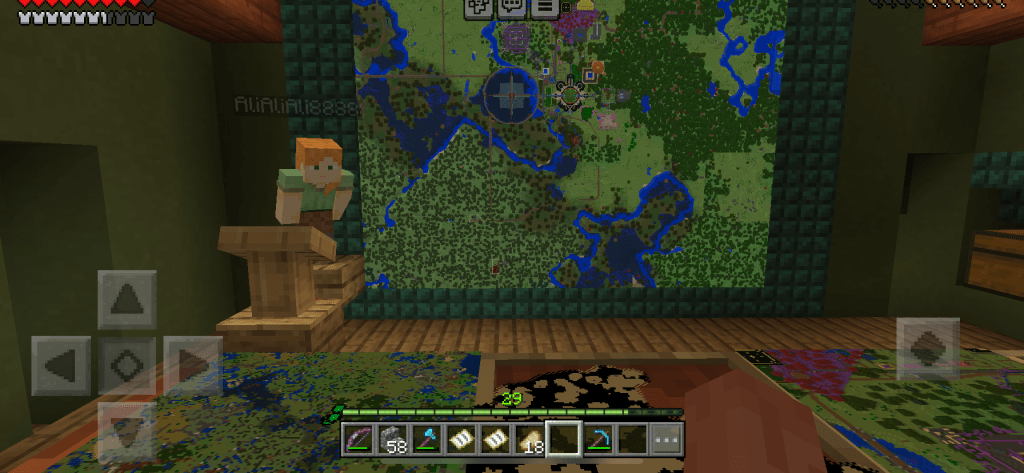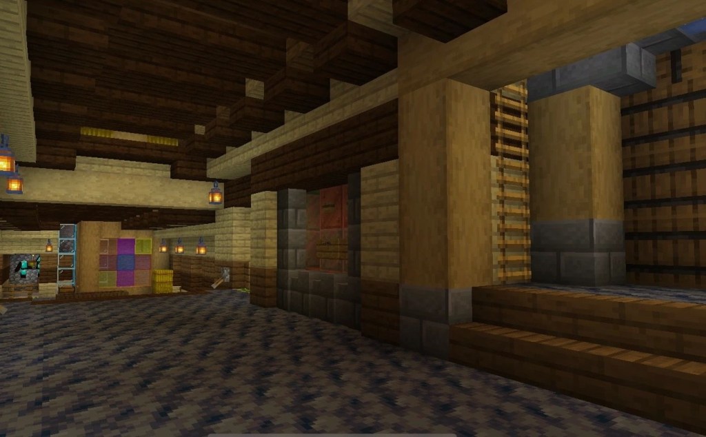 A new map room was a must on this build. The map is now 6×6 small maps, which is around 750×750 blocks. (In the picture below Ali has just noticed that I have zoned out during one of her lectures. )
