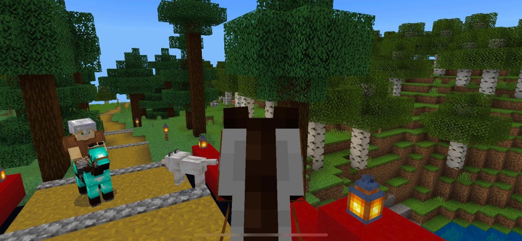 The horse track and accompanying infrastructure was a big build. There are three inner tracks that are about a thousand blocks and an outer track that runs around the outside of the map and is several thousand blocks long.