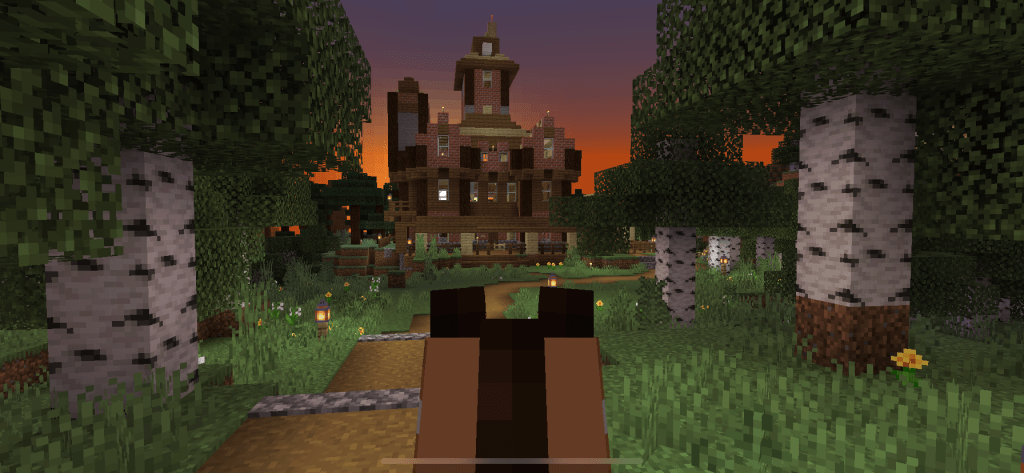 I built another housing building further down this road in the far southwest of the map. It’s functional with a safe stables on the side and sits between the large spruce and birch forest and on a river. I may extend and improve this house in the future.